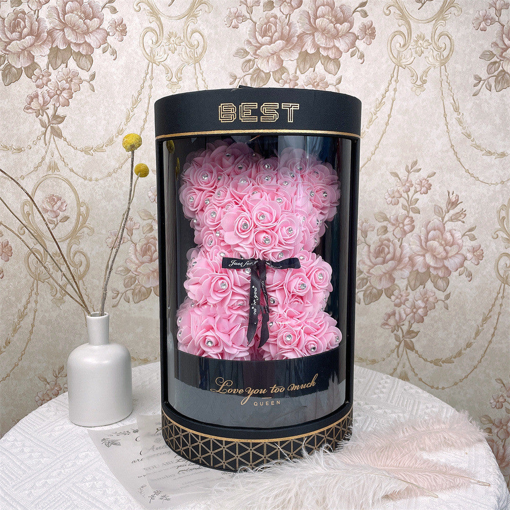 Make a lasting impression with this exquisite Pink Rose Bear, beautifully handcrafted from delicate foam roses and presented in an elegant black display box. Designed to symbolise everlasting love, care, and appreciation, this timeless piece is the perfect alternative to traditional flowers — it never wilts and always stays beautiful.